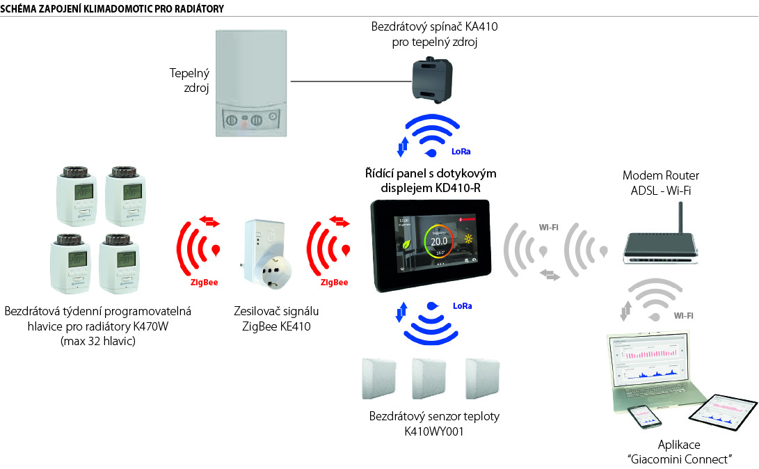 Bezdrátový senzor teploty nebo vlhkosti pro sálavé systémy.